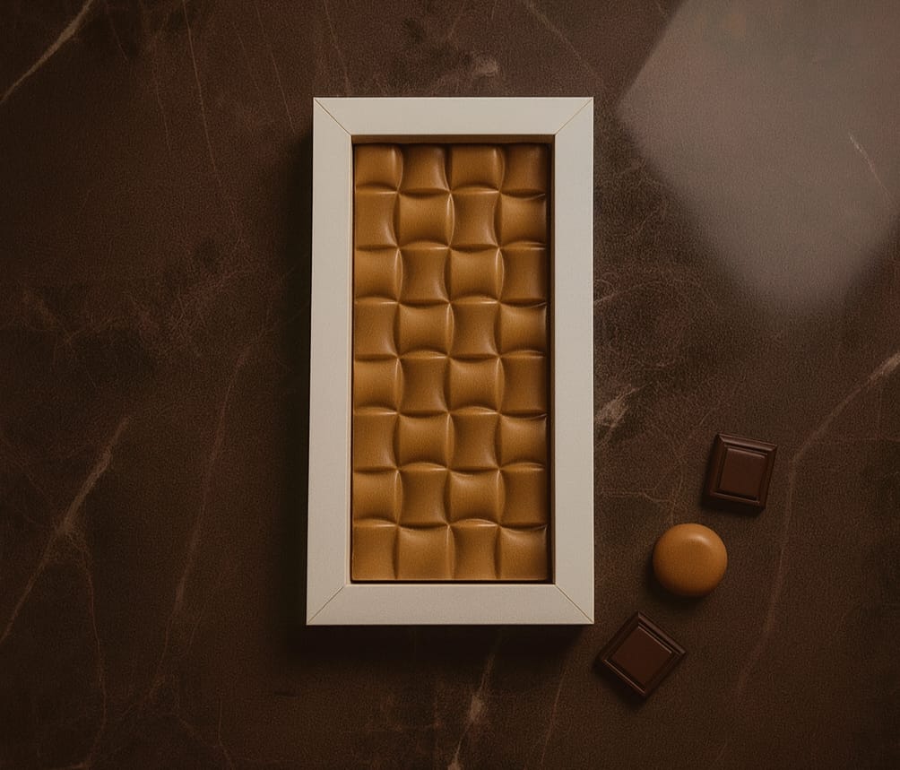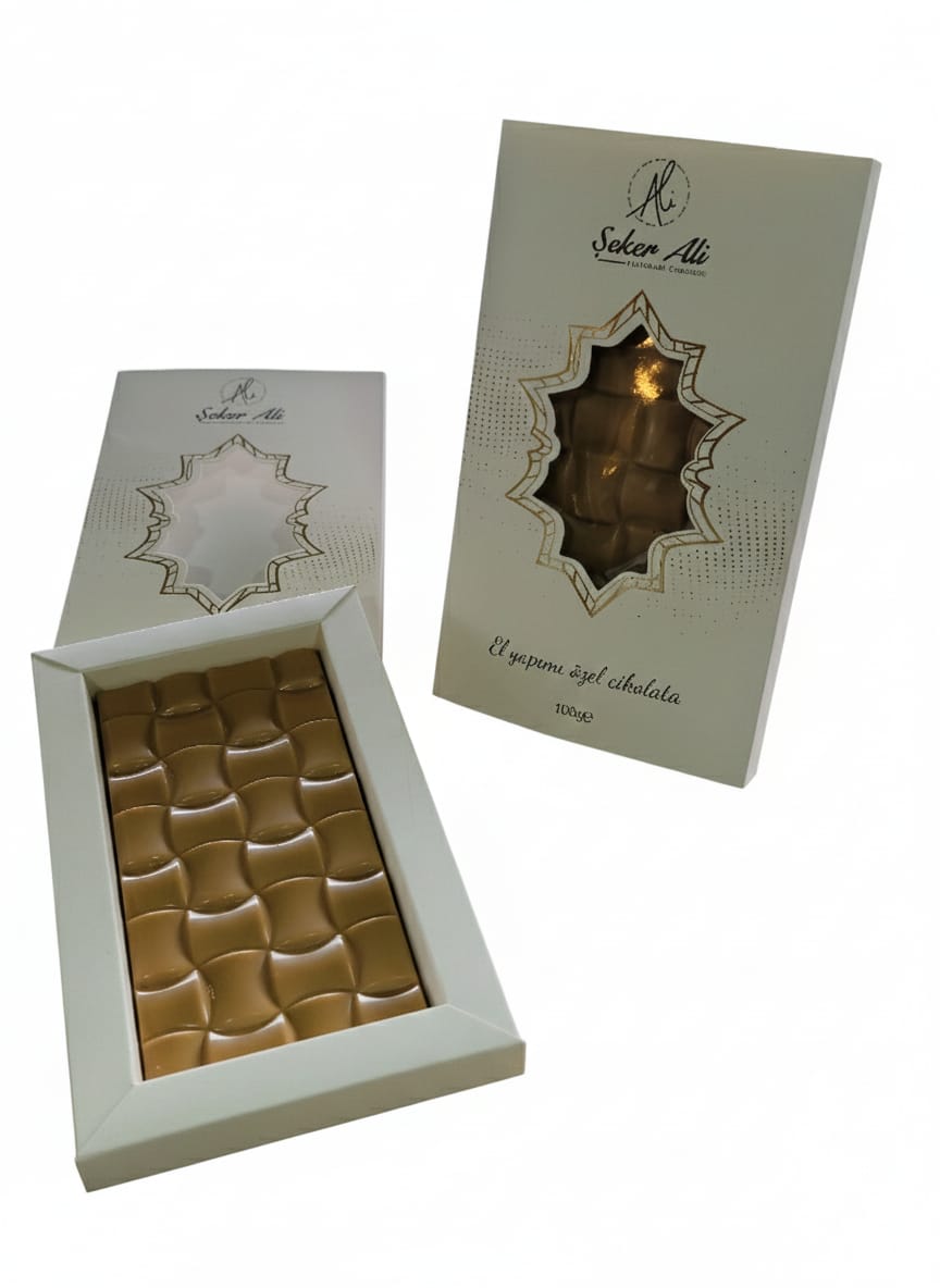 Belçika çikolatasından üretilen el yapımı karamelli tablet çikolata 100g e
