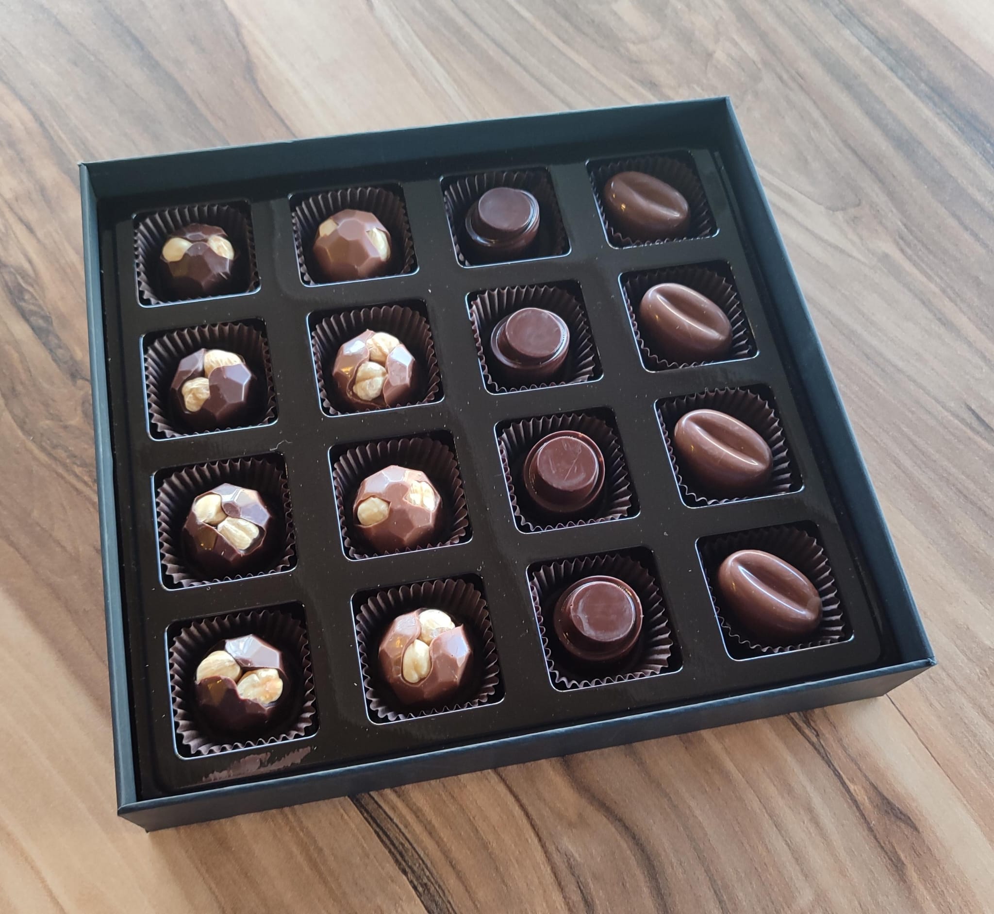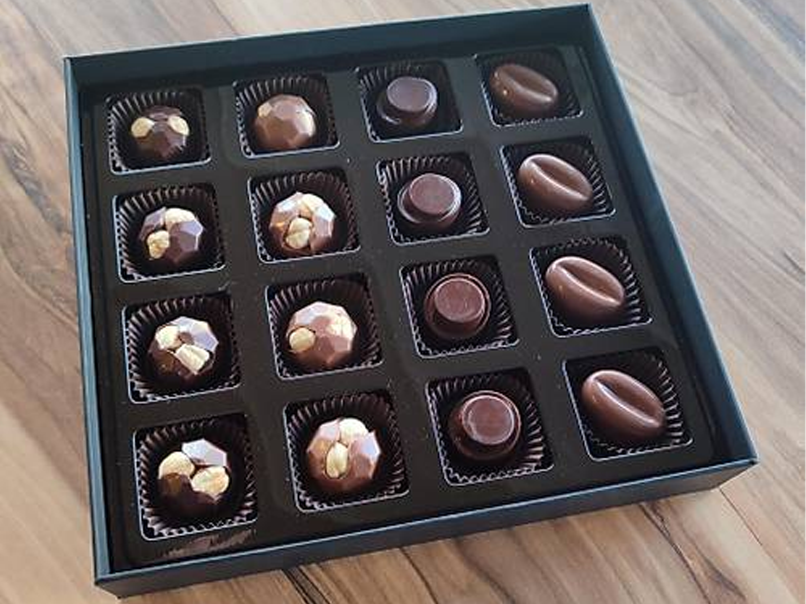 Gerçek belçika çikolatasından el yapımı olarak sütlü ve bitter çikolata ile hazırlanan farklı kuruyemiş ve dolgulu tatlardan oluşan spesiyal çikolata kutusu 160g e