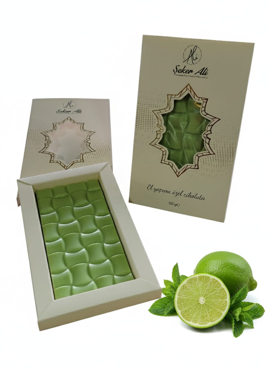 Belçika çikolatasından üretilen el yapımı misket limonlu tablet çikolata 100g e