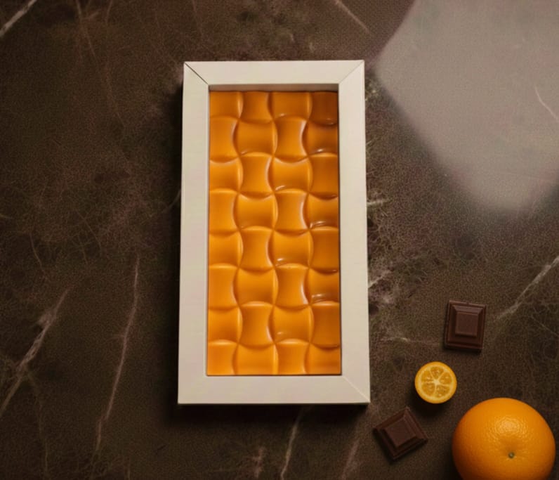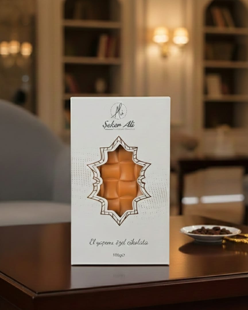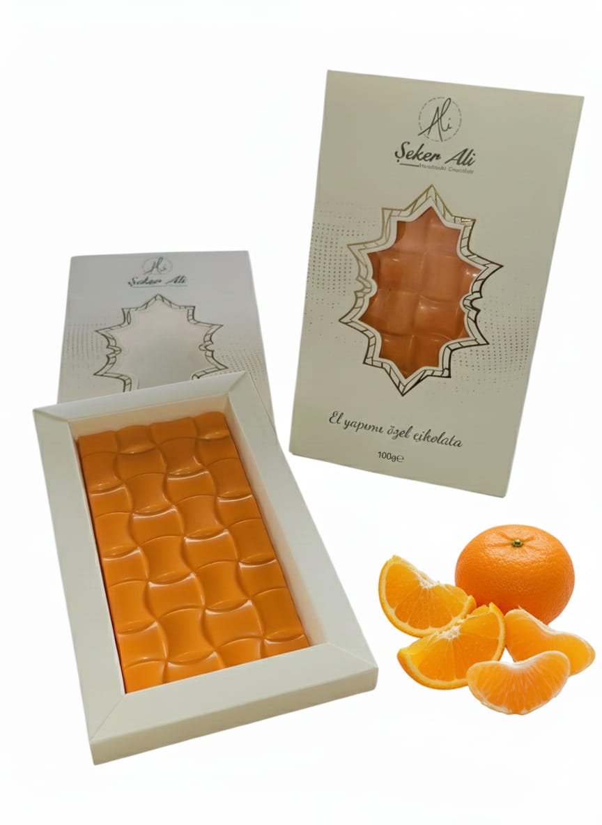 Belçika çikolatasından üretilen el yapımı portakallı tablet çikolata 100g e